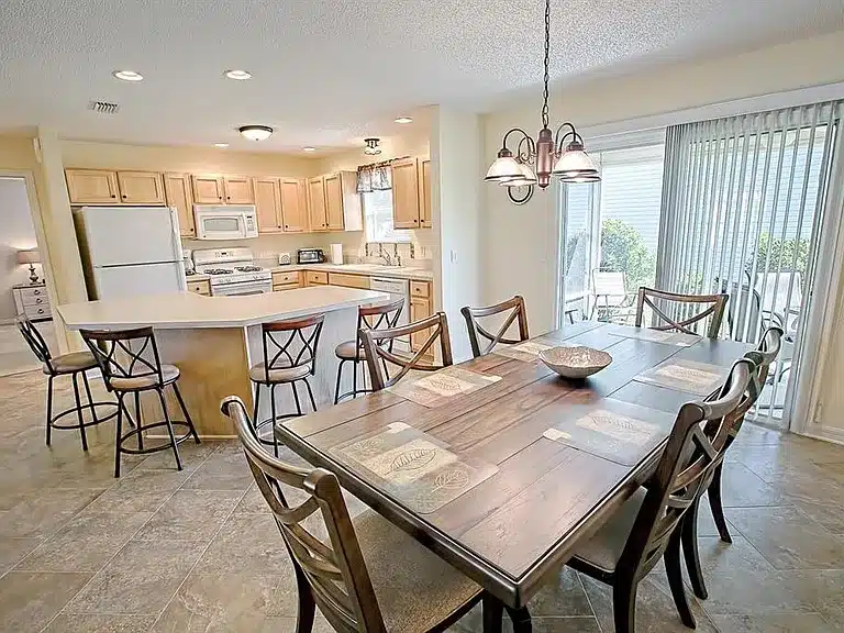 Ranch-style 3-bedroom, 2-bath single-family rental home available now in The Villages, featuring an open kitchen to dining/living layout, enclosed lanai, and comfortable furnished interior ready for move-in. Tile flooring runs through the main living areas with carpet in the bedrooms. This pet-friendly home includes in-unit laundry, central air conditioning, and a 2-car attached garage. Utilities like electricity, gas, grounds care, internet, sewer, trash collection, and water are included in rent. Located near Lake Sumter Landing, shopping, dining, nightly live entertainment, and community amenities in The Villages lifestyle.